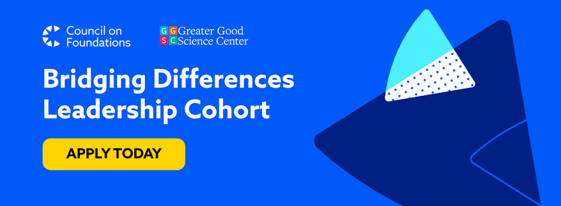 The Bridging Differences Leadership Cohort is a facilitated virtual learning experience that supports funders looking to build constructive dialogue and understanding across differences. Gain new skills for your work, experience personal growth, and share insights with your organization. Apply by February 20, 2026!