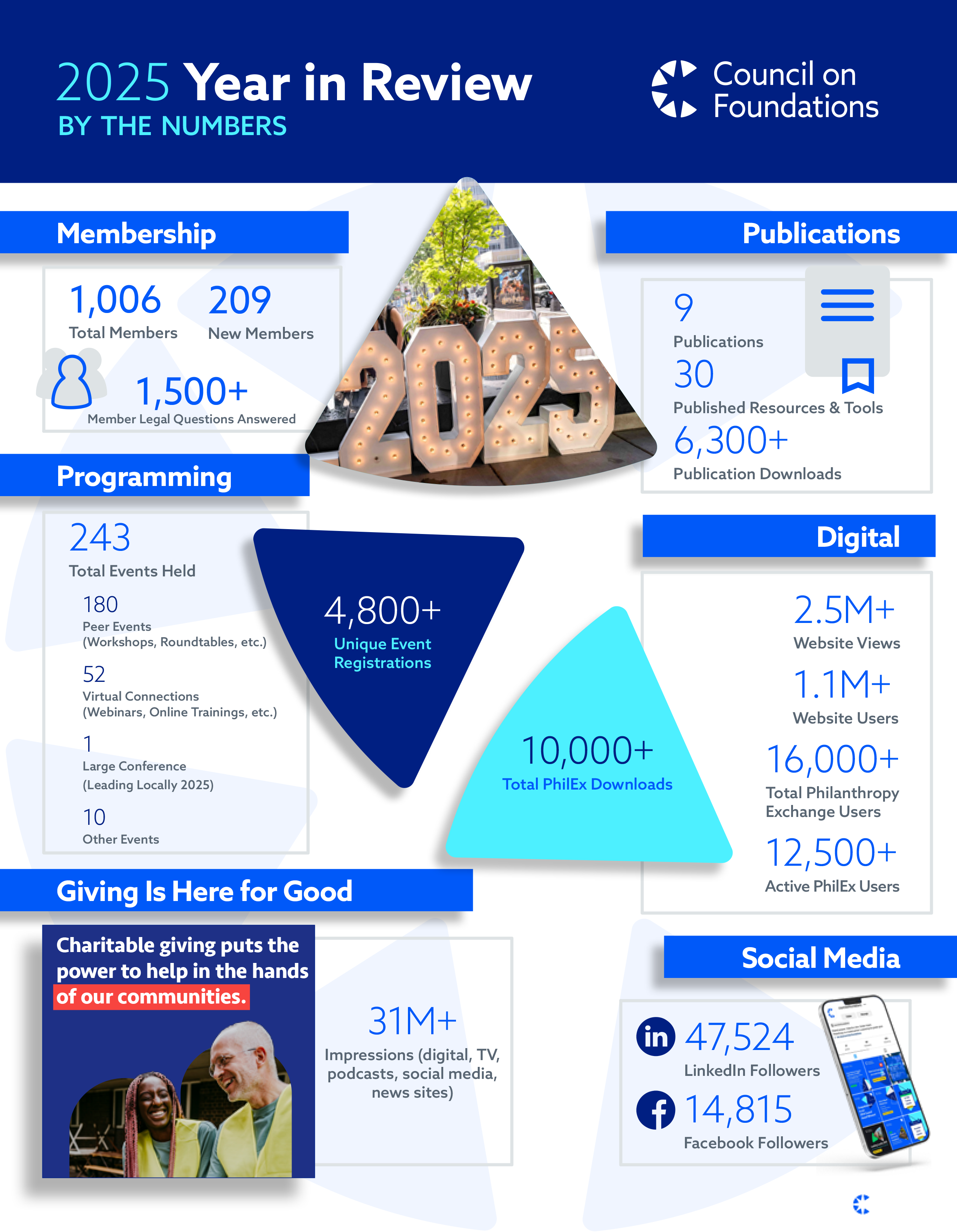 Our sector's strength is borne of our collective resolve. Council members represent and serve the full spectrum of society, from who they are to where they serve to how they positively impact their communities. And as 2026 begins, we look forward to another year of benefitting from that strength and leveraging it to protect and promote the charitable giving that powers our service.